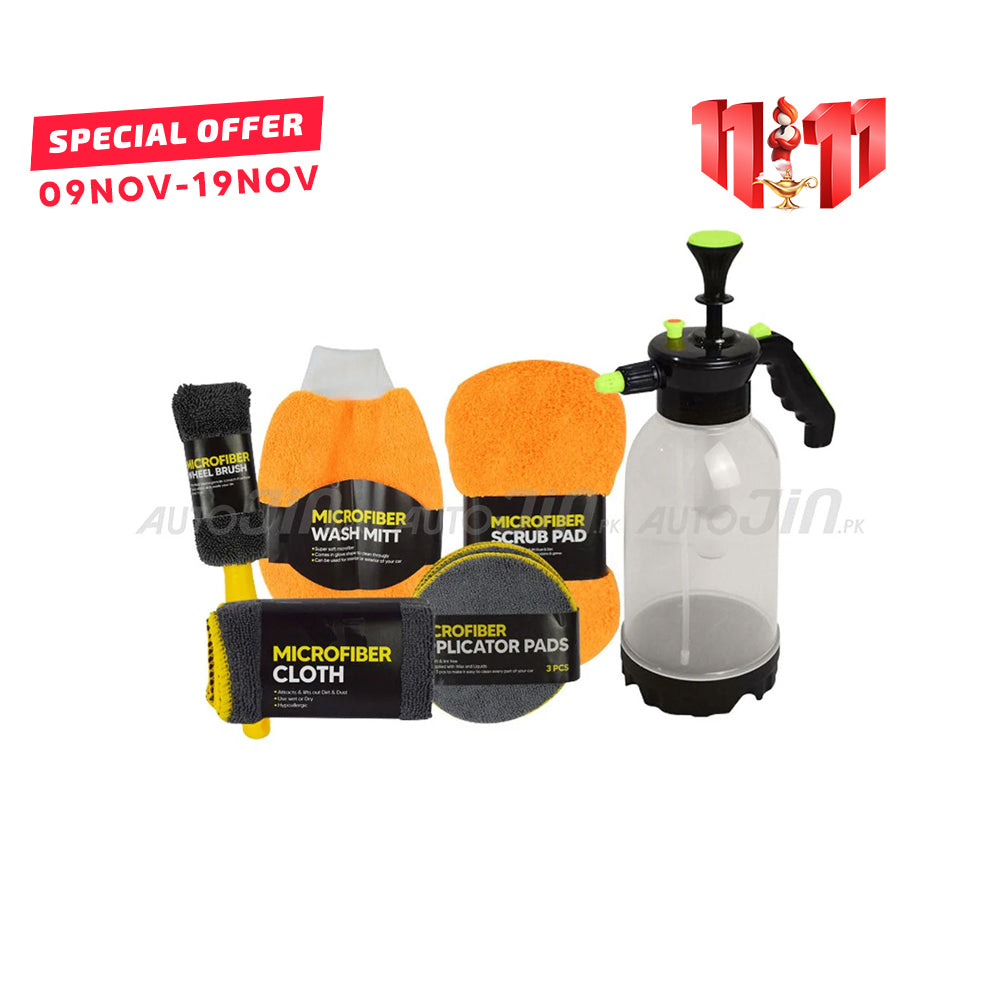 This handheld pressure spray Bottle can be used for gardening as well as home cleaning purposes or while washing your car. You will be able to make all your hard work even easier with this sprayer Bottle. It features an automatic safety relief valve that allows you to control the pressure of water & adjust it according to your needs. With Microfiber 9 pcs kit, this deal makes car wash much easier than ever before.