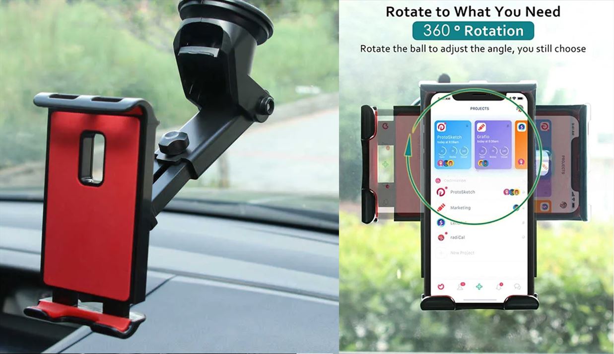 This car mobile holder can withstand everyday use. The mount features a heavy-duty suction cup, which can be easily attached to a flat, smooth surface on your car's dashboard or windshield. The strong suction can hold your device securely in place, even during bumpy roads or sudden movements. With its adjustable long-arm design, this mount provides a panoramic view of your smartphone's screen, ensuring easy accessibility and navigation while driving. The mount's long arm can be adjusted to find the perfect viewing angle, allowing you to comfortably use your smartphone's various features, such as GPS navigation, streaming, and hands-free phone calls. The arm is also rotatable, allowing you to adjust the position as needed.