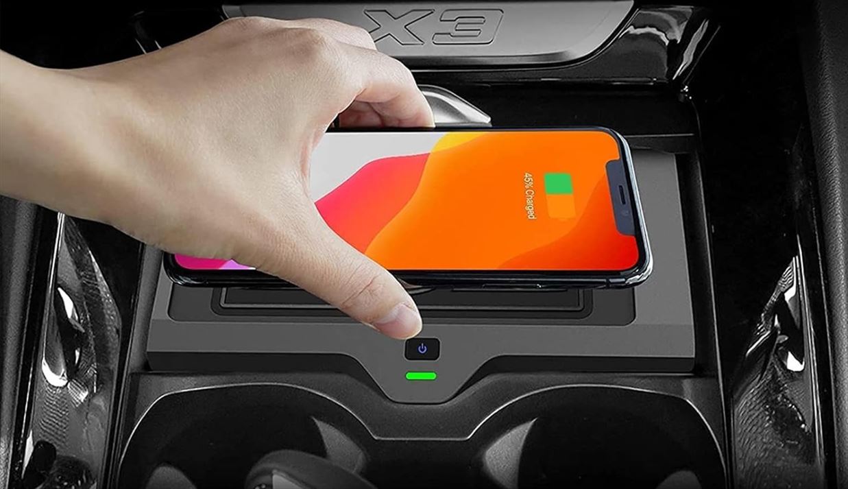 This is a wireless charger that is designed to fit in the central console of the car. It comes with the OEM fitting of the dashboard, which fits point to point without disturbing the interior of the car. Just put the wireless charging device on top of it, and it will start charging the device. It saves time and saves the driver from the hassle of the wire while driving the car. It makes the interior futuristic and eliminates messy wires.