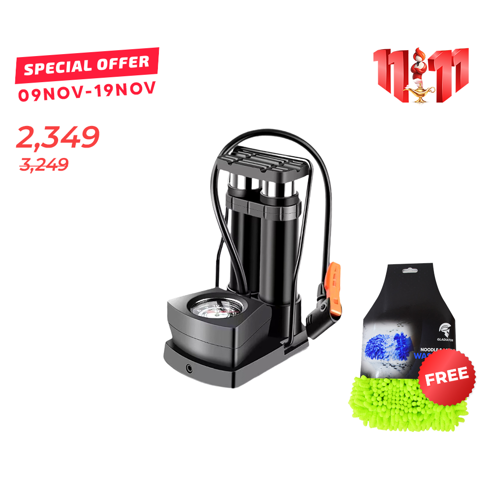 Double cylinder foot air pump maintains proper tire pressure which is essential for the performance and safety of your vehicle. You can easily store it in the trunk, glove box, or any other vehicle storage compartment, making it always available in an emergency.