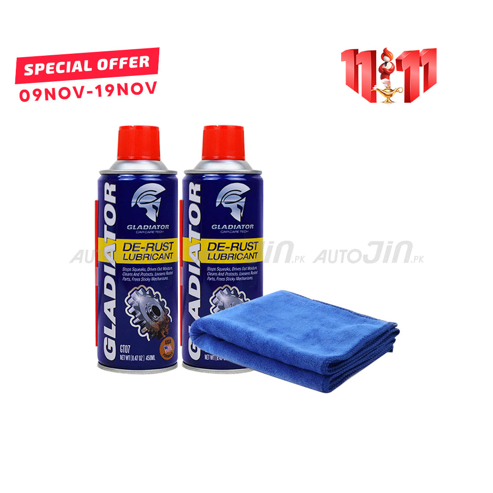Gladiator De-Rust Lubricant used for anti-rust can foam a protective film on the metallic surface to prevent the surface from contacting moisture and air, thus avoiding the surface from oxidizing and rusting. It is widely applied to protect precision anti-rust components, electric fitting contacts, iron and steel parts, and supersensitive components. It is an anti-corrosion spray and is commonly used to maintain machines, armament, electric tools, and precision instruments with high permeating ability. It can stop the squeaking of chairs, door hinges, metal gates, and vehicle parts, eliminating moistures to prevent the surface from rusting and ensuring its good lubricating performance.