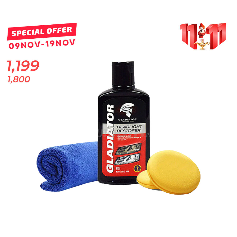 Gladiator Headlight Restorer can restore cloudy, dull, yellowed headlights to look like new. Gladiator clears the headlight lens in one easy step. No sandpaper or buffing wheels are needed. Gladiator’s unique combination of polishing compounds makes keeping headlights clear and improving visibility easy! Also use brake lights, motorcycle windscreens, helmets, and boat windows.