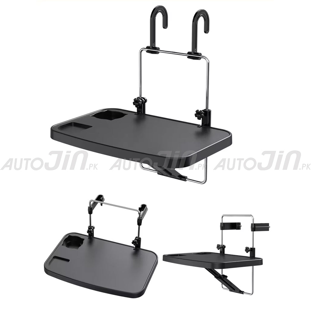 The Vehicle Multi-use Tray with Hook for Headrest is a convenient and stylish accessory for your car. This innovative product is designed to keep your essentials organized and easily accessible while on the go. One can use it for dining or use it as a workstation to save time and get the work done on time. The tray is constructed from high-quality materials, ensuring durability and longevity. It is designed to fit easily onto your car's headrest, providing a stable and secure platform. The tray features a sleek design that complements your car's interior, adding a touch of elegance. The Vehicle Multi-use Tray with Hook for Headrest is a must-have accessory for any car owner.