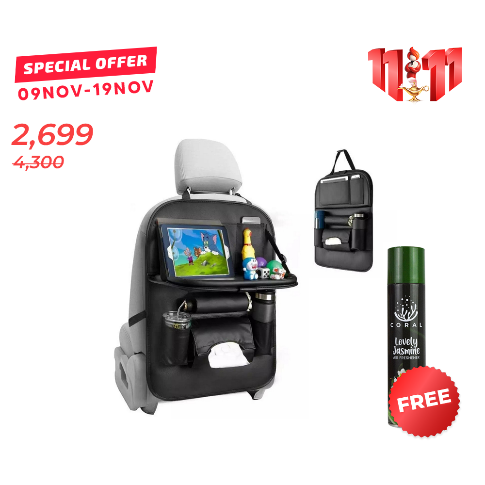 But not anymore. The car back seat organizer and storage bag is an excellent bag to hang on the back of the seat to organize all the stuff and store it in a secure place and position. The car back seat organizer has the functionality of a dining tray to serve the food easily in the car. The storage bag is a universal bag and can be used for any car seat. It helps a lot for a family person and can be used to entertain the client in the cab service. The car back seat organizer storage bag has seven pockets, one tissue box carrier, and one dining tray.