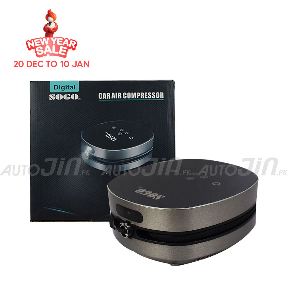 This SOGO air compressor is a round-shaped air compressor among the other air compressors, and it has a much longer power cable for ease at the time of operation, which means you are free to move and take the compressor with you. SOGO is the name of trust and quality. This air compressor is so elegant and, at the same time, powerful enough to fill a tire very easily. Tires play the most important part in the safety and security of the car while driving. This SOGO air compressor can be used for cars, motorcycles, bicycles, balls, and inflatable items.
