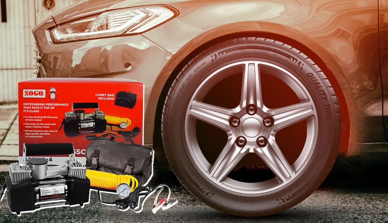 Sogo Dual Cylinder Air Pumps is a must for every driver! Don’t let a flat tire leave you stranded. This high-quality tire inflator portable air pump for the car comes replete with a high accuracy tire pressure gauge, backup fuse for lighter, non-slip handle, and battery clamp for connecting the unit directly to the car battery. Its foot Rubber Air Hose, 9-foot yellow PVC Coiled Air Hose with Quick Connect Valve, and 10-foot Copper Power Cord Cable combine for a generous total of 20 feet in cable-hose length! Reaches front and back tires of all cars, trucks, and SUVs. With the 3 inflation tips included, the compressor will also inflate bikes, motorcycles, balls, air mattresses, sports equipment, and other inflatables. Sogo 12V Air Compressor, working Pressure up to 150PSI, able to inflate things in minutes!