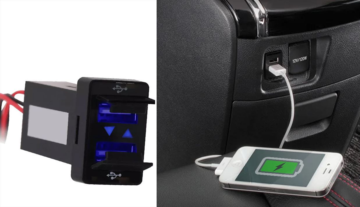 This USB power socket adaptor is Convenient For your Toyota car or truck. The Toyota USB adapter with Dual USB ports, can charge two different devices simultaneously. It can quickly charge mobile phones, PDAs, tablets, cameras, GPS and other devices.