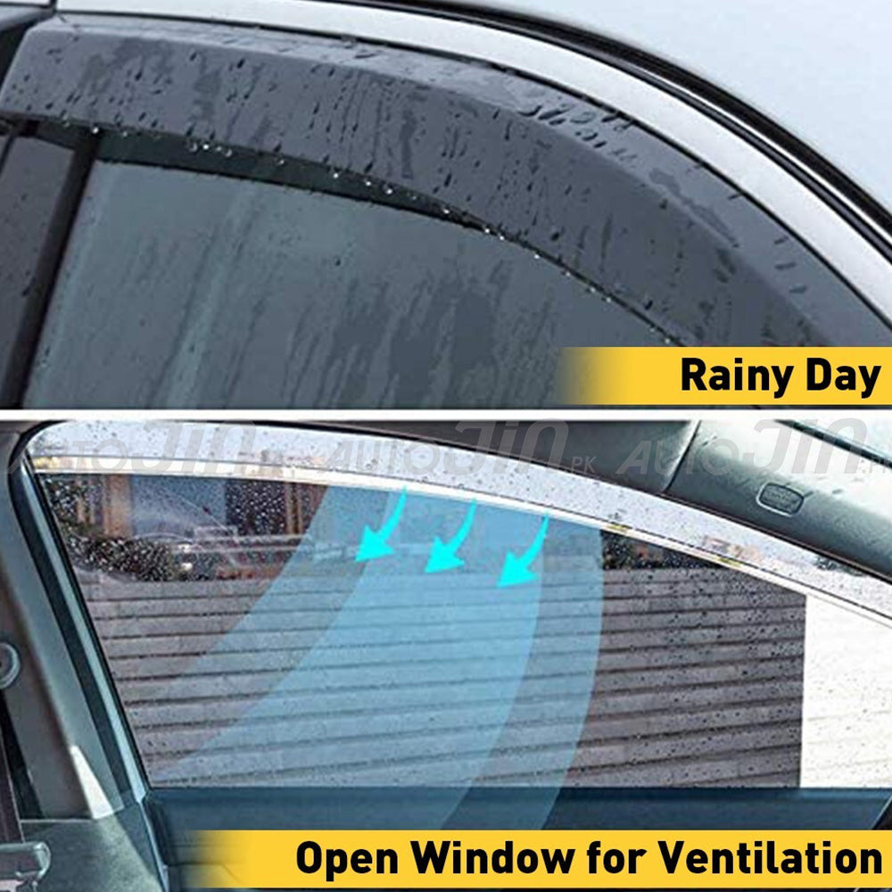 These window visors and air press are fit for Toyota Raiz. Let's fresh air in and keep the sunlight, rain, and snow out. The window deflector allows fresh air to circulate in the car and removes stale air and odors. Air press reduces interior wind noise and window glass vibrating and protected from window glass to be cracked and helps to reduce heat inside of the vehicles. Precision-engineered and custom molded for an exact fit. No special hardware or drilling is required, attaches with 3M automotive-grade adhesive.
